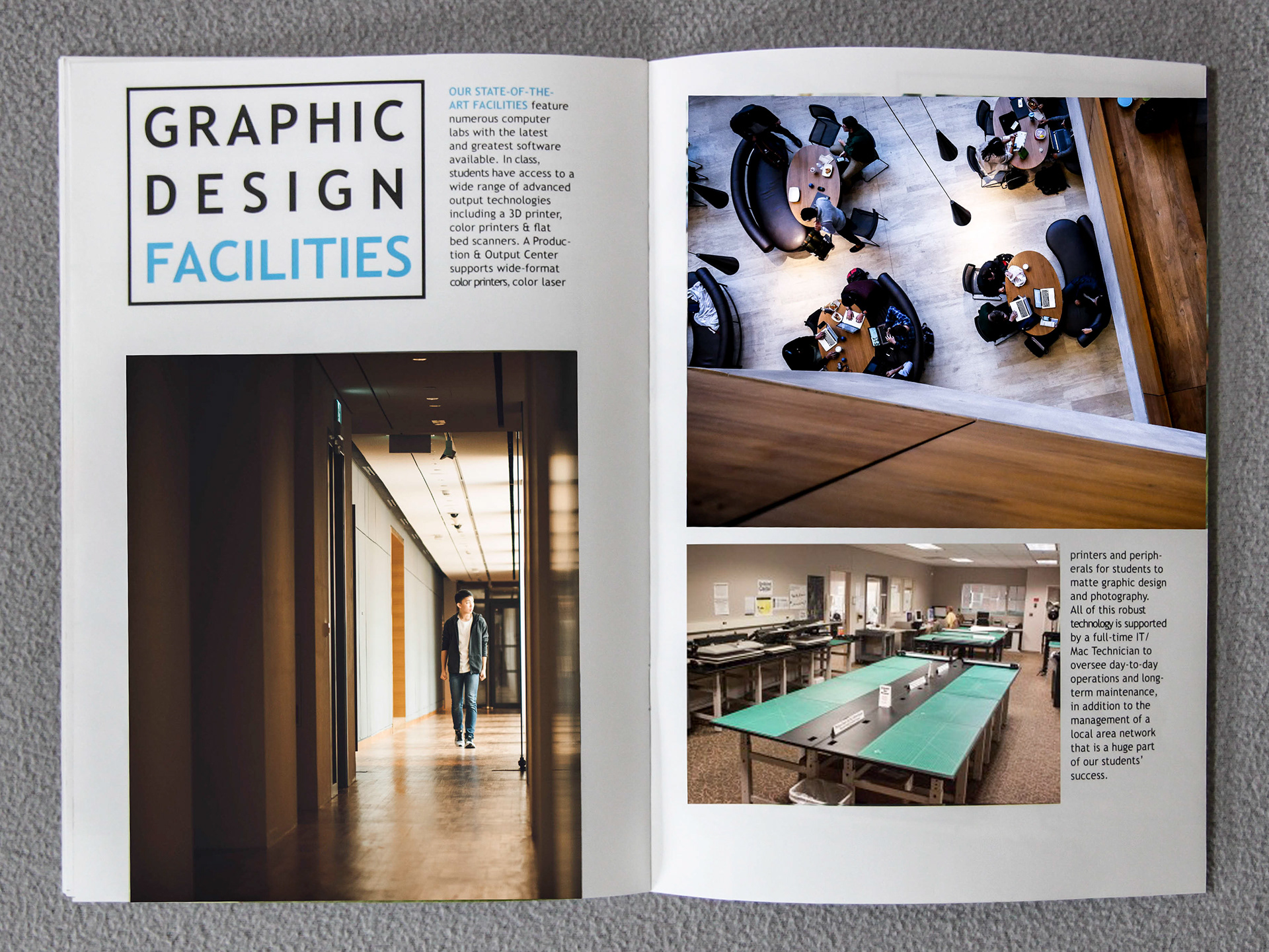 Below is an assignment featuring the Graphic Design department of Washtenaw Community College created as a brochure to send out to potential students informing them about the program and what it has to offer. The assignment required a certain amount of information to be displayed as well as being easily mail-able to students.